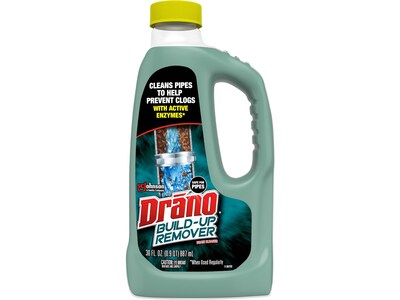 With a unique formula containing natural enzymes, the Drano buildup remover helps prevent clogs from forming in your pipes. This product helps remove buildup, but will not unclog your drain. Use this buildup remover on a monthly basis to keep your drains running smoothly and prevent clogged drains. An ounce of prevention is worth a pound of cure.