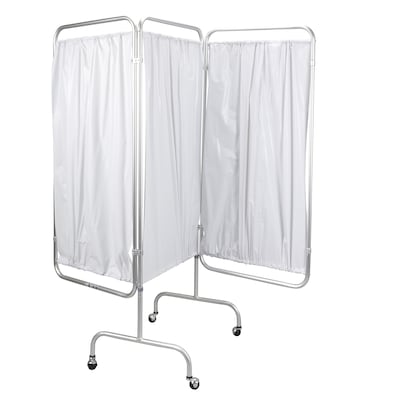 Manufactured with flame retardant bacteriostatic white vinyl and sturdy 1" anodized aluminum tubing, the 3-panel privacy screen from Drive Medical is well-built and functional. The materials are as easy to maintain as they are useful. Each hinged panel measures 56" high and 27.5" wide, giving the product an overall height of 70.5". Four 3" hooded casters make transportation and repositioning a cinch.