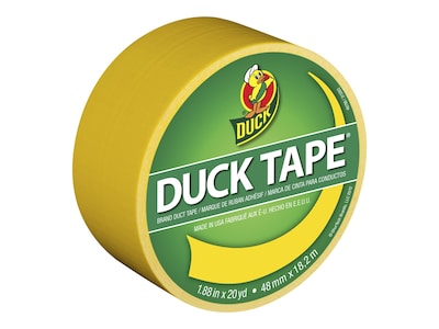 Create a color-coded storage or organizational system by using this bright yellow duct tape. Constructed with a flexible plastic backing and strong adhesive, this multipurpose tape conforms to irregular surfaces, bends, and corners, providing an ideal medium for arts and crafts projects, as well as a dependable solution for general repairs. This Duck Tape Brand duct tape tears cleanly by hand for quick application.