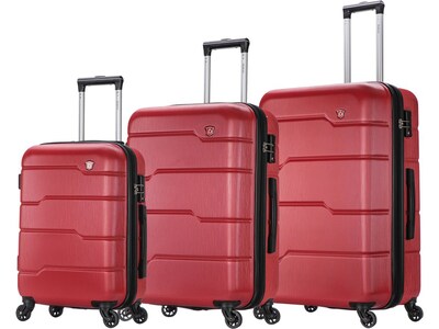 DUKAP Rodez 3-Piece Hardside Spinner Luggage Set, TSA Checkpoint Friendly, Red (DKRODSML-RED)