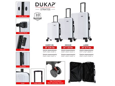 Order DUKAP Stratos Hardside Spinner Luggage Set, TSA Checkpoint Friendly, White (DKSTRSML-WHI) today at Quill.com and get fast shipping. Stack coupons to get free gifts & extra discounts!