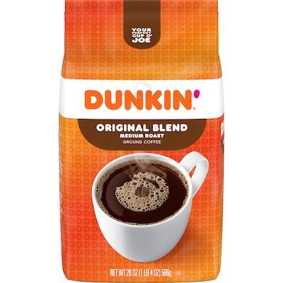 Fill the lounge, office break room, or other space with the delicious aroma of this Dunkin' 20-ounce original-blend medium roast ground coffee.
