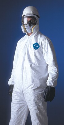 DuPont® Tyvek® Coveralls, 3XL Size, Front Zipper, White, Elastic Wrist & Ankles, 25/Carton