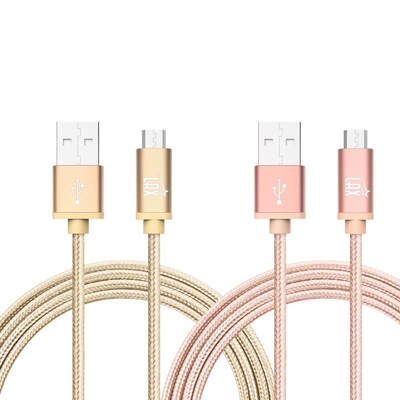 Durable Braided Micro USB Cables for Android Smartphones, Samsung, LG 10 foot set of 2 - Gold + Rose Gold