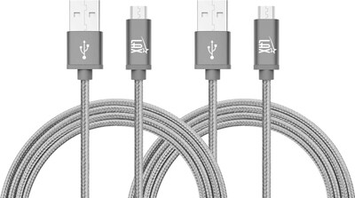 Durable Braided Micro USB Cables for Android Smartphones, Samsung, LG (10ft) - (Set of 2 - Gray)