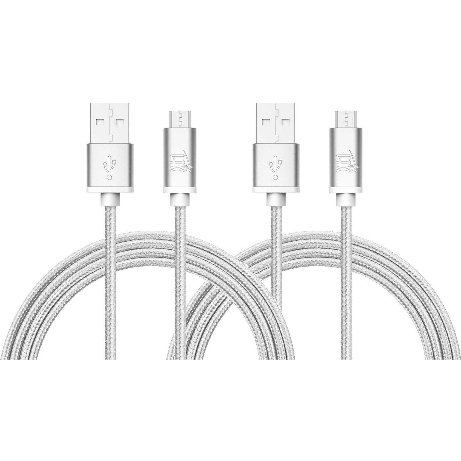 Durable Braided Micro USB Cables for Android Smartphones, Samsung, LG (10ft) - (Set of 2 - Silver)
