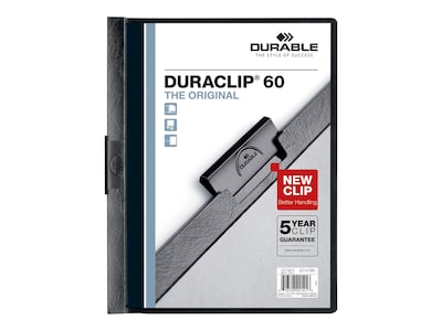 The DURACLIP is the original punch-free report cover since 1959, developed by DURABLE, and still made in its German facilities. A strong "memory" clip expands to hold contents securely and returns to its original shape after use. The clip has a five-year guarantee. Each report cover is made of sturdy vinyl with clear front to show-off contents while protecting them from the elements and accidents. With a 60-sheet capacity for 11 x 8.5 inch (letter size) sheets, each DURACLIP Report cover has a colored back and spine with a clear front cover. Durable is an office supplies manufacturer that has risen to the highest ranks among German brands and is celebrating more than 90 years in operation. At Durable, we believe in taking responsibility for our choices and fostering stewardship. Durable products are good because of their durability. Our high quality standards enable us to produce outstanding consumer items that are built to last, thus requiring less frequent replacement. At Durable, we continue to seek ways to offer consumers the highest quality products, and, at the same time protect and preserve the future of Mother Earth.
