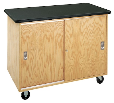 DWI Bare Bones Mobile Lab Table comprises of pink laminate top. This product is finely finished with chemical resistant UV and is available with unbreakable aluminum sliding door glides.