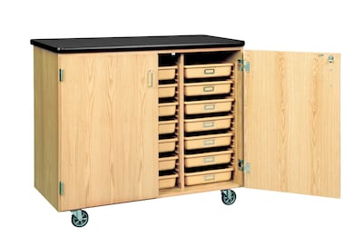 DWI Mobile Tote Tray Laminate, Oak Wood Storage Cabinet - Accommodate files, folders and mobiles with ease!