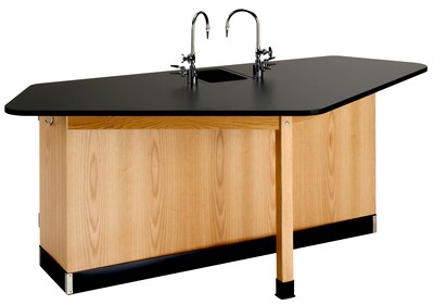 DWI Student Workstation with Sink 36"H x 88"W x 46"D Epoxy Oak Wood - Surface made from chemical resistant phenolic resin