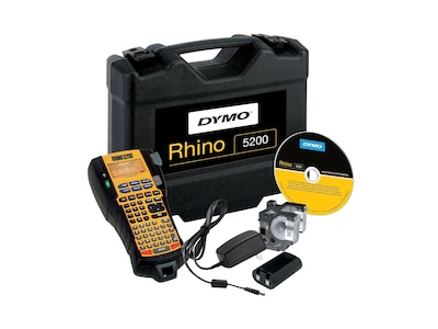 The DYMO Rhino 5200 label maker kit includes a hardshell carrying case to protect the label printer. A Rechargeable lithium-ion battery pack and AC Adapter offer versatile power options for portable use. Print your choice of labels immediately with the included 3/4-inch white flexible nylon tape and 3/8-inch white vinyl tape. A CD with user manual helps you learn all the intricacies of using the machine.