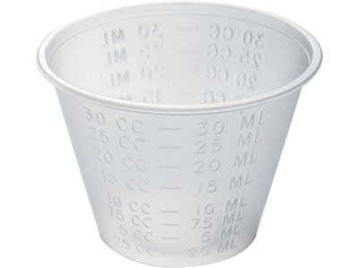 - 1 oz. medicine cup designed to reliably hold and dispense medications and liquids