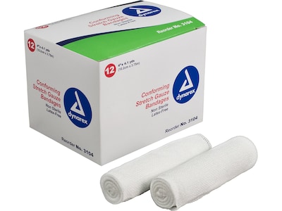 Dynarex 4" Single-Ply Stretch Gauze Bandage, 12/Pack, 8 Packs/Carton (3104)