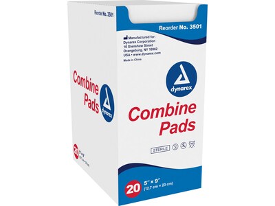 The Dynarex combine pad is designed for use where high absorbency is needed for heavily draining wounds. The pad has an outer cover constructed of a soft nonwoven material, filled with a fluffy inner filling which absorbs fluids and is sealed at the edges to prevent any leaking.