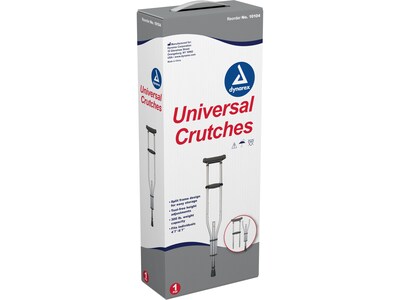 The Dynarex universal crutch is a durable motility aid used for adults and children. The crutch is perfect for either long- or short-term use and features tool-free height and handgrip adjustments. Constructed of sturdy aluminum, the crutch is sleek and has a convenient knock-down design.