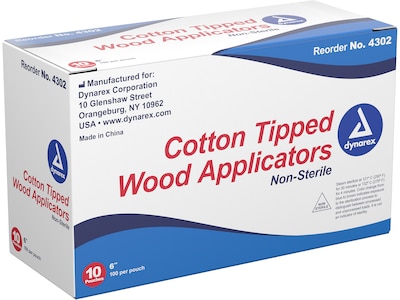 Dynarex Cotton-Tipped Applicator, Non-Sterile, 100/Pouch, 10 Pouches/Box, 10 Boxes/Carton (4302)