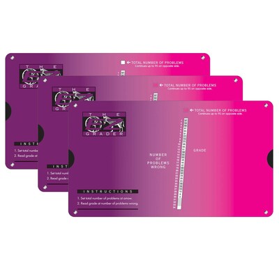 This slide chart is the same size as our popular "Original, Pink or Purple", but is done in a beautiful graduated color. This Ombre chart starts with Byzantine, which is a rich tone of purple toned towards Magenta. Scores any number of questions up to 95, with up to 34 incorrect. Actual size is 8.5" x 4.75". Saves time and effort when grading homework, tests or quizzes. Sold as a pack of 3 E-Z Graders.