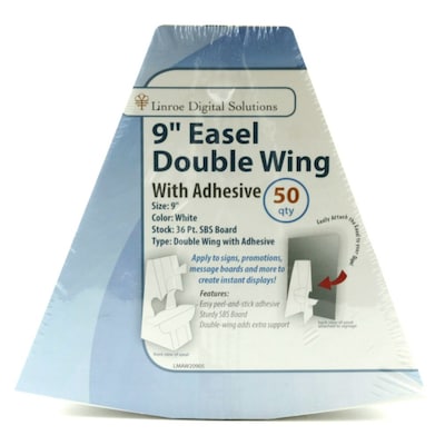 Easel Double Wing Easel with Peel and Stick measures nine inch in length and is made of durable solid bleached board. It features peel and stick adhesives and carries your message out in a large way.