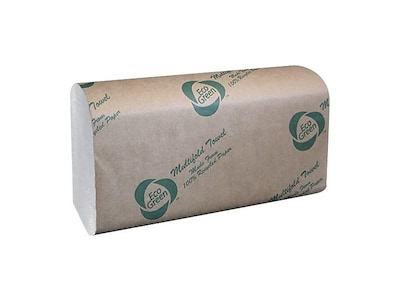 Eco Green Recycled Multifold Paper Towels, 1-ply, 250 Sheets/Pack, 16 Packs/Carton (EN416)