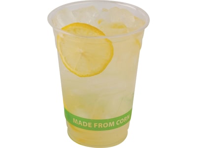 Promote sustainable practices by using these 16-ounce plastic cups. Durable, leak-free corn plastic provides a secure and compact container for drinks, snacks, and even small supplies, making them a great choice for wine tastings and other sampling. Available in a 50-pack case, these Eco-Products plastic cold cups are a great choice for stocking the office break room or the kitchen pantry.