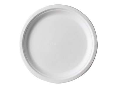 An Eco-Products sugarcane plate is a strong, grease- and cut-resistant alternative to traditional plastic or polystyrene. Sugarcane fiber products are BPI certified and made from a 100% reclaimed and renewable material.