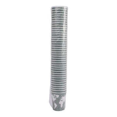 Provide employees, clients and guests coffee, tea or other beverages with these 12-ounce dark-green insulated hot cups. The interiors are lined with plant-based plastic to prevent leaks, while the 12-ounce size makes them perfect for holding a single serving. These Eco-Products paperboard and PLA hot cups come in a carton of 600 units to ensure you have plenty for your needs.