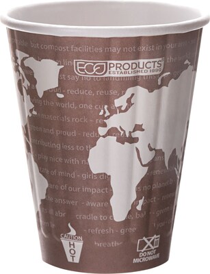 Eco-Products® World Art™ Plastic Hot Cup is made from 100% renewable resources and has a double-wall construction and PLA lining.