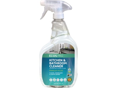 The all-purpose ECOS PRO Parsley Plus kitchen and bathroom cleaner cleans and fights odors with the natural power of parsley. This readily biodegradable, pH-balanced formula removes dirt, grease, grime, and scum from water-safe surfaces. It cleans and shines all areas of the kitchen and bathroom, works exceptionally well on granite and marble, and leaves no haze or residue even on high-shine stone surfaces.