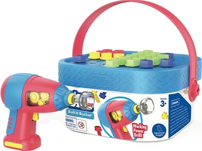Get ready for building fun on the run with this portable construction bucket featuring a drillable activity board lid. The Educational Insights Design and Drill Bolt-It Bucket is the construction toy set that's all about the thrill of on-the-go drilling. It's perfect for fun at home or as a travel construction toy. Little builders learn early STEM skills through hands-on play thanks to the built-in drilling board lid on top of the bucket that's packed with brightly colored bolts. Plus, the toy power drill lets kids see the gears turn as they play.