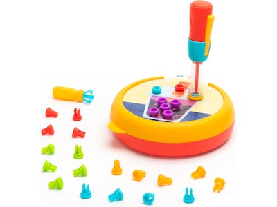 Use the kid-friendly rivets included in this Educational Insights Design & Drill Rivet Pop Cafe set to decorate colorful food designs and practice number recognition, counting, and color matching. The set includes a rivet tool, rivet remover, 10 double-sided food cards with 20 full-color illustrations, 30 colorful rivets, and a shaped board that doubles as storage for the cards and rivets.
