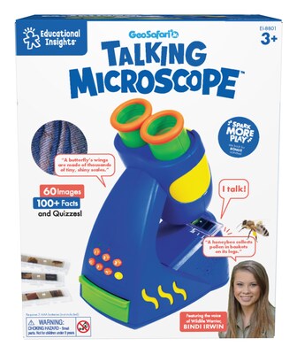 - GeoSafari Jr. Talking Microscope features the voice of Bindi Irwin, Wildlife Warrior from Australia Zoo