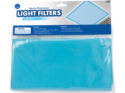 Fluorescent lights are a staple in classrooms and offices, but their harsh glare and flickering light can cause eyestrain, headaches, and anxiety. Cover your fluorescent and LED lights with these fabric panels that fit over standard ceiling fixtures with sturdy, sewn-in magnets. Each set includes four 2’ x 2’ heat-resistant panels in Tranquil Blue. For use with fluorescent and LED lights.