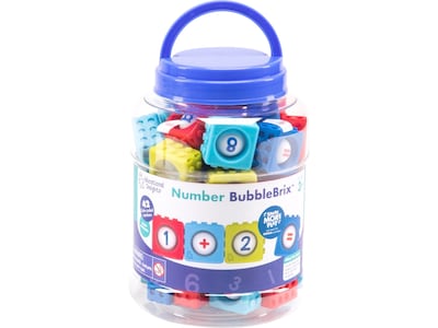 - Includes: 42 Number BubbleBrix, storage bucket with handle, and activity guide packed with early math activities