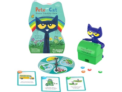 Pete the Cat and his friends are learning new ways to solve problems at home, school, and on the playground. Use the from Educational Insights groovy friendship toolbox to find the right solution for each situation. The first player to match each token with a card wins. Includes a toolbox dispenser, 16 plastic tokens, 40 situation cards, spinner, and a game guide.