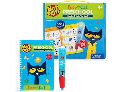 Get a head start on preschool with your groovy learning pal, Pete the Cat from Educational Insights. This comprehensive two-in-one activity book has 100 pages of both reading and mathematics activities: everything kids need for school success. Use the included interactive Pete the Cat Hot Dots pen (with lights, sounds, and a mute button) to complete activities.