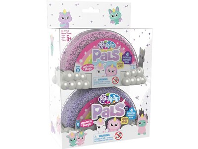 Make some playfoam unicorn magic. Pop-open the rainbow to reveal the heart-sparkle playfoam with four magical surprises hiding inside, then use the playfoam to sculpt pretend play props. Which magical unicorn toy will you find inside your playfoam rainbow? There are 45 mystical creatures to find and collect. Each rainbow of Playfoam Pals contains a mystery collectible unicorn toy figure, such as a unicorn, kittycorn, llamacorn, or you could even find rare twin baby gem unicorns. Each rainbow contains a mystery collectible pal, mystery charm, playfoam, and a collector guide.
