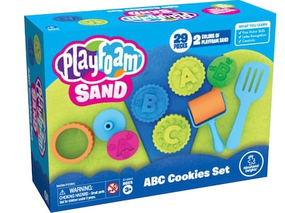 Kids can stamp and serve their way to letter learning with the Educational Insights Playfoam sand ABC cookie set. Sculpting and squishing help develop fine motor skills. The set also helps develop number recognition and counting skills. Playing with the Playfoam sand builds imagination and creativity.