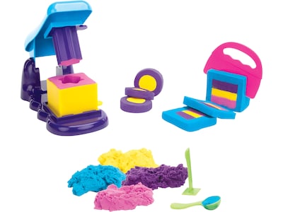 Shape, slice, and reveal surprise designs with the Educational Insights PlayFoam Sand Magic Reveal sensory toy set, which includes everything you need to create your own mesmerizing sand reveals. Includes 3 lbs. of sand in four different colors, a design station, cylinder and cube molds, three core molds, three shaped stampers, a cutter, and a scooper.