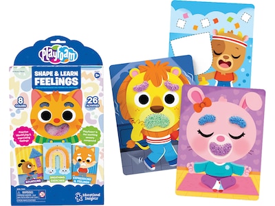 Combine sensory play and social and emotional skill development with the Educational Insights Playfoam Shape & Learn Feelings sensory activity set. Use Playfoam to complete situation cards, calm down with breathing exercises, and recreate expressions to match emotions. Includes eight colors of Playfoam, downloadable SEL content, and 13 double-sided activity cards.