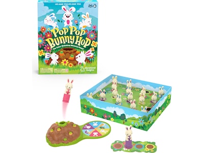 Hop into family game night with the Educational Insights Pop Pop Bunny Hop color-matching memory game that's fun for every bunny. Spin the spinner and place a matching-color bunny in the carrot patch launcher. If it pops, you keep it. If it doesn't, put it back in the garden. The first player to collect a bunny in every color wins. Includes a game board (packaging is the part of play), carrot patch launcher with spinner, 20 bunnies in four different colors, four player cards, and a game guide.