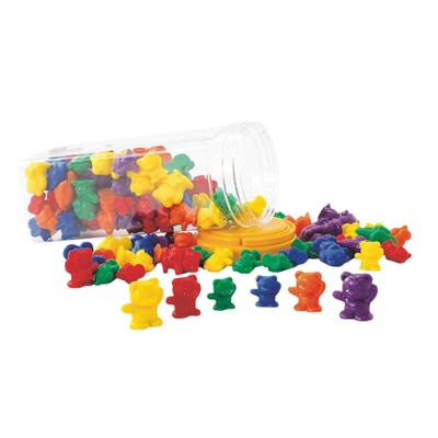 The EDX Education Co. Ltd. Bear Counters feature an exciting set of endearing bears that allow you to teach and practice counting in an effortless way. Available in three different sizes, three weights and in several shades, this set of adorable bears i s an ideal manipulative to use at school or home. This set will let students sort the bears by their size and colors, patterns, which helps in classifying them and makes counting a fun learning activity. Pack includes 24 large, 24 medium and 48 small be ars for a total of 96 pieces and comes in a durable plastic jar.