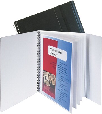 Organize projects, subjects, notes and more in one convenient place. Eight interior pockets allow for detailed organization by enabling you to sort documents for one large project or use each pocket for smaller jobs. Extra-durable, spiral-bound poly exterior has a sleek, professional appearance. Security flap and elastic closure protect materials during transport. Black exterior with contrasting white interior.