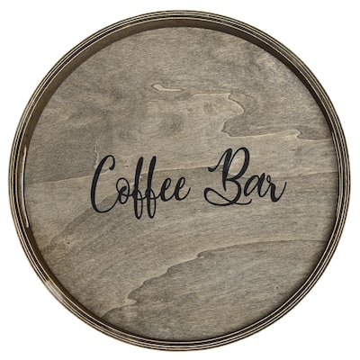 Elegant Designs "Coffee Bar" Decorative 13.75" Round Wood Serving Tray w/ Handles, Rustic Gray Wash (HG2013-RGC)