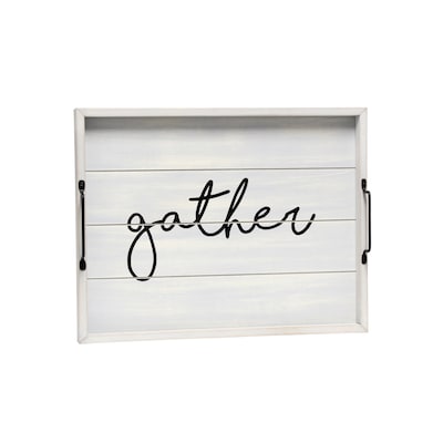 Freshen up your home with this gray wash wooden tray! Accented with black metal handles and black text this tray is on trend to give your home that cozy farmhouse feel. Use to serve breakfast in bed, food and drinks at a party or makes for an excellent centerpiece for your dining table, kitchen counter, coffee table or ottoman.