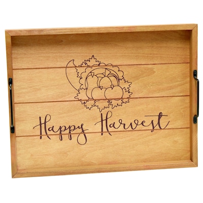 Elegant Designs "Happy Harvest" Decorative Wood Serving Tray w/ Handles, 15.50" x 12", Natural Wood (HG2000-NHH)