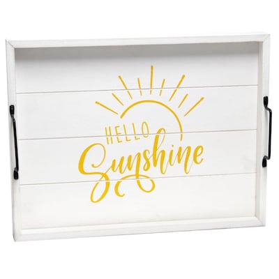 Elegant Designs "Hello Sunshine" Decorative Wood Serving Tray w/ Handles, 15.50" x 12", White Wash (HG2000-WHS)