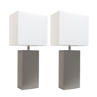 Elegant Designs 2 Pack Modern Leather Table Lamps with White Fabric Shades, Gray
