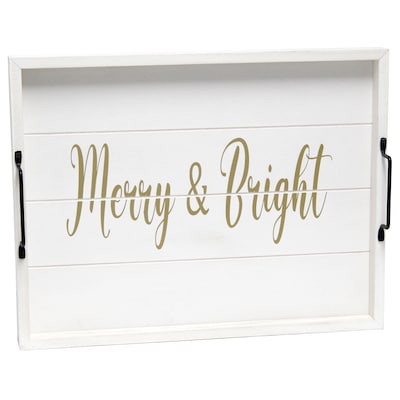 Elegant Designs "Merry & Bright" Decorative Wood Serving Tray w/ Handles, 15.50" x 12", White Wash (HG2000-WMB)