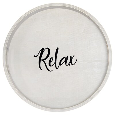 Elegant Designs "Relax" Decorative 13.75" Round Wood Serving Tray w/ Handles, Gray Wash (HG2013-GYX)