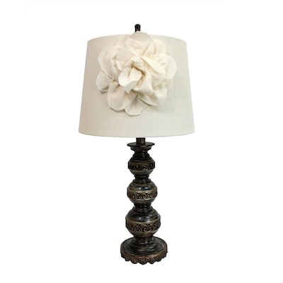 This aged bronze table lamp, with its three stacked ball base and linen shade with boutique flower adornment, will add style and pizzazz to any room. Perfect for living rooms, bedrooms, kids rooms, offices, or college dorms. We believe that lighting is like jewelry for your home. Our products will help to enhance your room with chic sophistication.